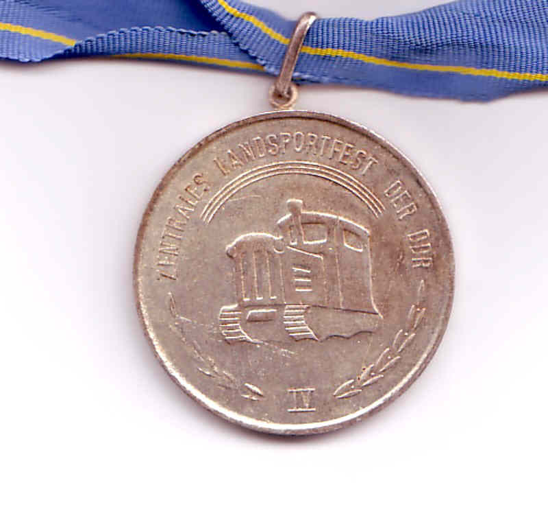 | Fußballer beim zentralen Landsportfest der Sportorganisation „Traktor“ eine Medaille und Pokal. |